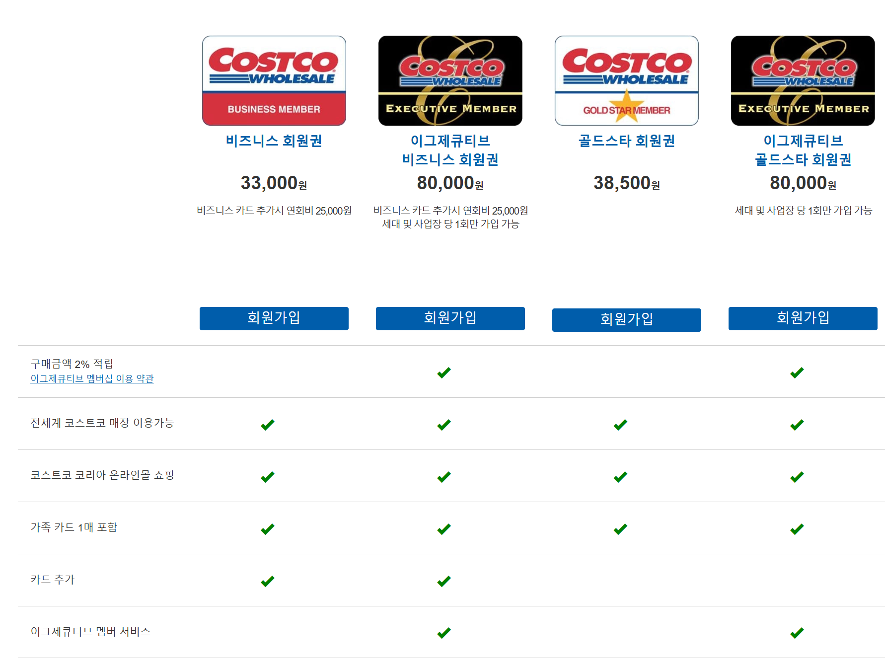 코스트코 회원 종류 비교